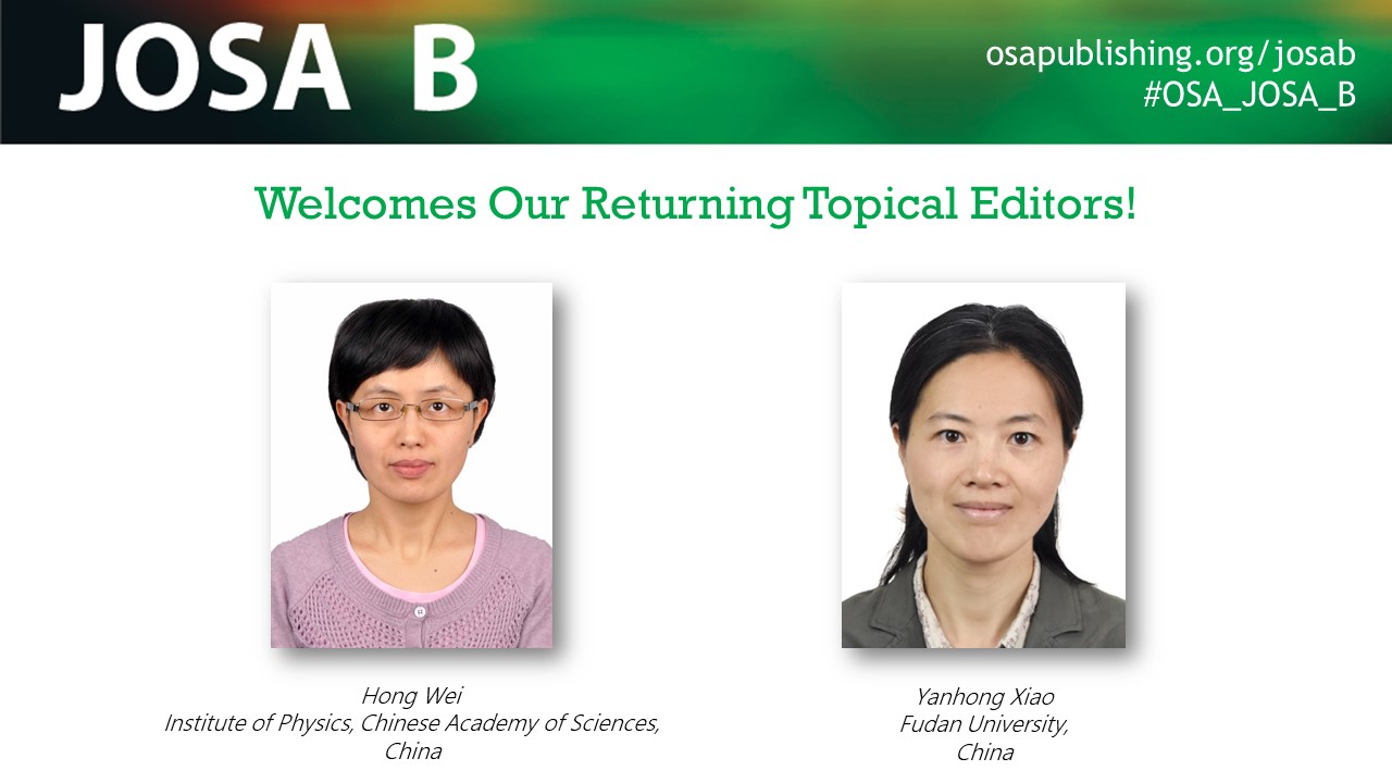 Osa Publishing On Twitter This Welcomeneweditorswednesday Meet Our Returning Osa Josa B Topical Editors Hong Wei Institute Of Physics Chinese Academy Of Sciences And Yanhong Xiao Fudan University Thank You For Volunteering Your Time